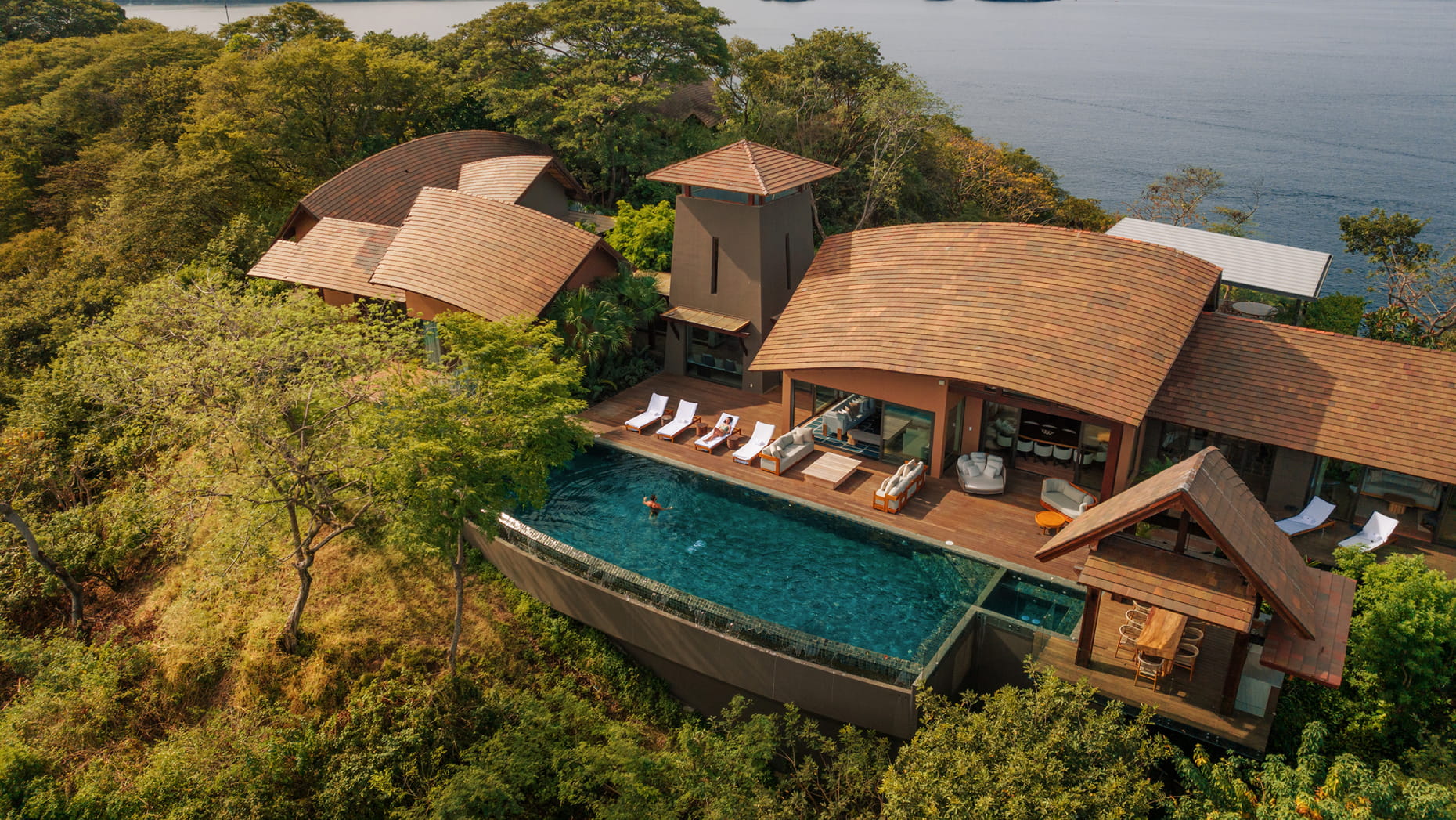 - Designed by Ronald Zürcher, the resort’s architecture is carved into the hillside and rainforest, integrating into the landscape.